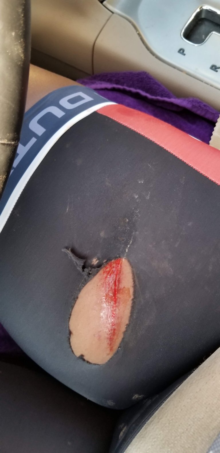 At the edge of the Red parking lot. I felt woozy, my blood pressure dropped and I was trembling. I thought to myself, ” You need to stop!” “Nah, you got this”, I said to myself and continued to pedal. Then something hit me. Was that a low flying bird? Whatever hit me in my face, smacked me in my eye. I shuttered from the pain. I tried to open my left eye. I couldn’t see anything. My vision was impaired. There was something in my eye. It felt like a mosquito had flown into my eye and was trying to sting its way out. I could feel something crawling around in the bottom of my eye between my eye and lid scratching my eye. I removed my left hand from my bike and tried to hold my eye. I had forgotten I was on the bike for a brief moment. I tried to open my right hand to grasp the brake gears, but I had trouble manipulating my fingers to control the braking mechanism. I decided to just let my bike roll until it stopped. I decided that it was time to quit. I was cold, I couldn’t see and in pain. I stopped a few inches from some volunteers and told them I was a previous spinal cord injury and had hypothermia previously, they called for an ambulance. I began to cry as I told them I quit.