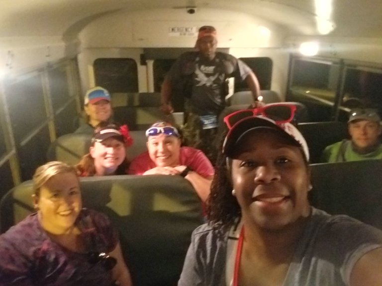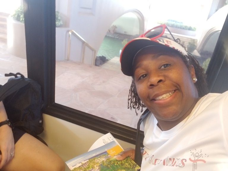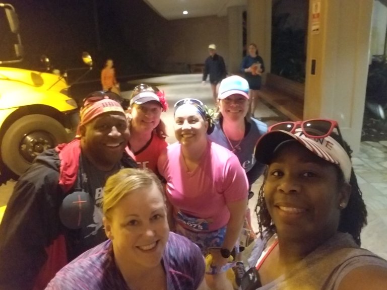 I woke up hydrated, ate breakfast and got dressed just like every race. I had to walk from the room through the resort walkway museum. So many cool things to see, but no time to take pictures. I had to walk because the boats and trams don’t operate that early. They stop operating at 10pm, but it was a really nice walk. There are stairs and an elevator to take you down to the bus area. The same place you would catch a shuttle to the shops.