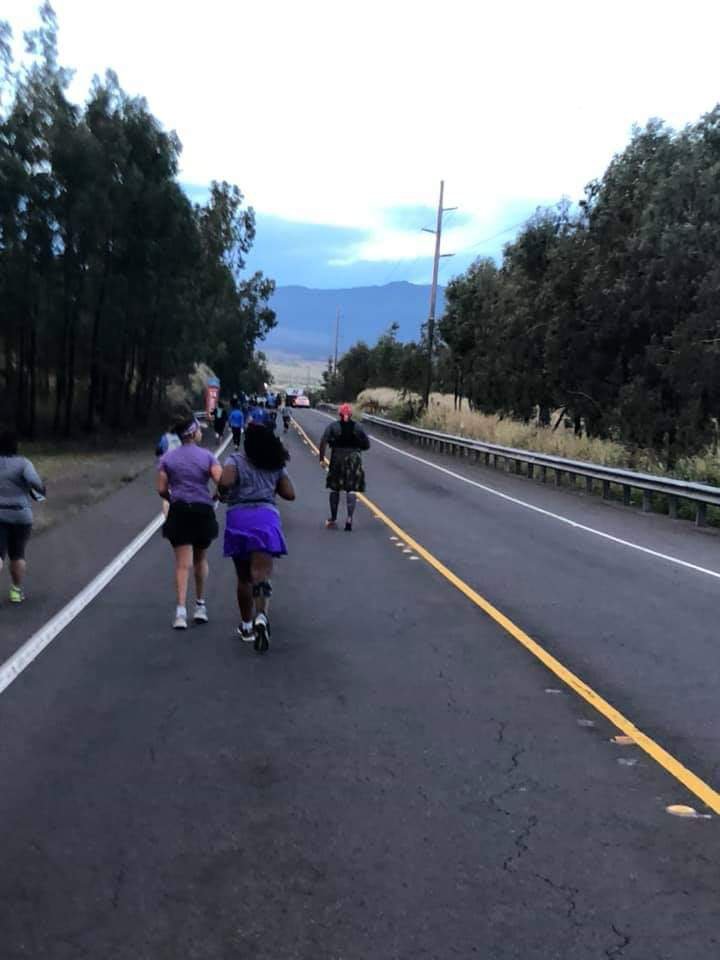 I have heard how awful downhills are and how they burn your quads up. Well, I felt nothing. I just kept praying that my feet would turn over so I wouldn’t fall. The wind was an ally and an enemy on the race. We were pushed from front, back and side to side. We started the same time as the marathoners and weather conditions were favorable. At the start we had a flat followed by a gentle downhill that got deeper at the .1 mark.