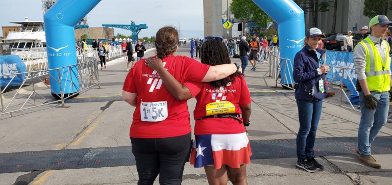 I returned to my room to find Molly had left a note. She had no idea she made my day, I needed a pick me up by the time I had gotten top me room.I took a shower and headed down to eat dinner in the hotel restaurant. It was a lovely meal.The next morning I caught an Uber and my driver was from Houston. He explained “Minnesota Nice” and I felt a bit better. I arrived to the airport TSA was closed. They opened exactly 45 minutes before the flight. Delta did not disappoint going home. I sat next to lady that works for the New York City Marathon we had a great conversation about our running journey and marathons. She actually said she saw me with Molly completing the 5k. She described our shirts and told me where she was. My heart was filled with happiness, we were one of the last people to cross the finish line on that 5k, but we finished within the time allotted unassisted. The motto of Dare2Tri is one that I hold dear, “One Inspires Many”.
