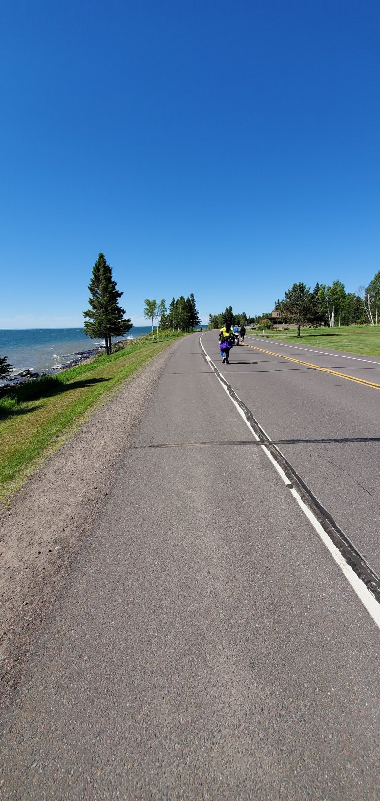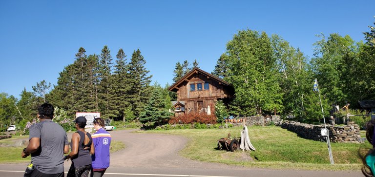 Good thing I started the race before the 5:30 pacer. Around mile 15 was the first shot to head, the sag bus that had been patrolling the road searching for prey finally rolled next to me and my guide. We are still young in the game at this point, I was looking good, feeling good, playing music and talking. Driver asked if I was ok. Well to you that may seem courteous, but to a slower runner you are causing undo stress. I am thinking now. Am I moving to slow? Am I looking bad? I saw the bus had quite a few people on the bus, was it because they were too slow or did he punk them into believing they couldn’t make the time? I am not getting on a bus. I immediately started to think about the people behind me and how that could through a curve ball in their mental toughness. I can make this 7 hour cut off I told myself and suddenly got slower. My morale was already hanging on by a thread because I was in pain. I saw beautiful nature, but there was no energy for me on this course. I hadn’t reached Duluth where people would be out dressing in costumes. Little did I know that I would never see them either because I was back of the back and those people were long gone by the time we arrived on the scene. Most volunteers are up at O’dark thirty and they are tired and enjoy seeing the elites and faster runners.