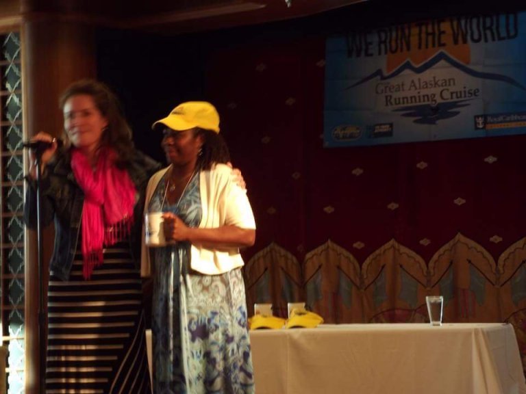 He is known as “the Penguin” for his back-of-the-pack speed, he was overweight, uninspired, and saddled with a pack-and-a-half-a-day smoking habit he said he found himself in a middle-age slump we he discovered running it changed his life forever. He spent 18 years as a Runner’s World columnist and the voice of the Rock n Roll Marathon series. On the last night of the cruise I was presented with the 2016 Penguin Inspiration Award, by his wife Coach Jenny Hadfield.