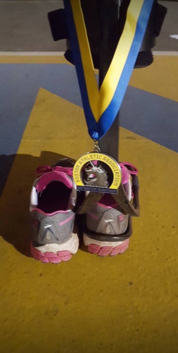 She didn’t run the race for a medal, but it was an added bonus. I would have given her mine. So now my journey begins in Boston. I qualified on the course, do I run it again another year? Time to bust of the jacket, I earned it. I will lick my wounds later and hold my head up high.