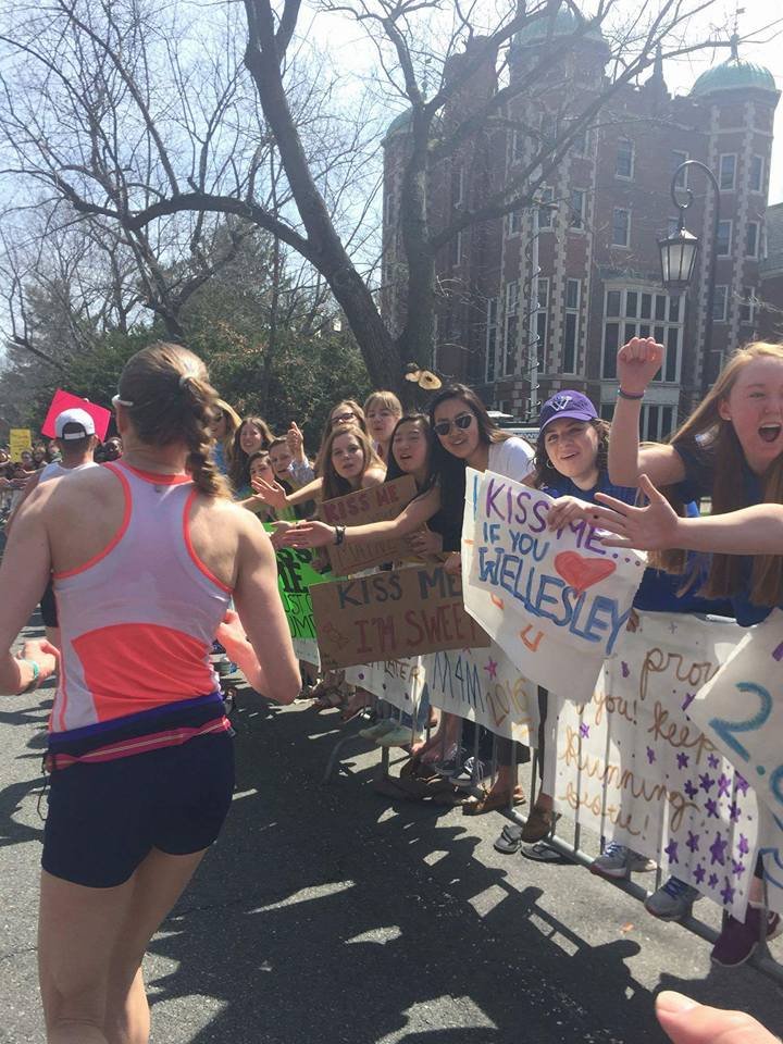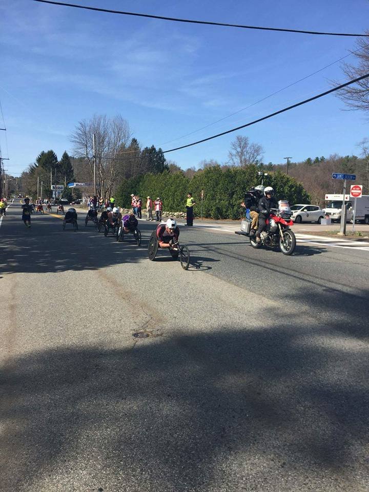 I kept thinking it could be 87, but it was only 67 at that time. I kept talking to myself. “Too hot to be in Boston, shut up this is a blessing. It was freezing and raining last year just be happy. ” Here comes the Police on motorcycles waving the crowds back so we can scoot over so we wouldn’t be trampled. He was followed by the soldiers on a back of a van with door open. They are followed by the press and then runners. Each wave has the same entourage so we had seen it with the wheelchairs, handcycles and now elite women and the elite men will follow minutes later.