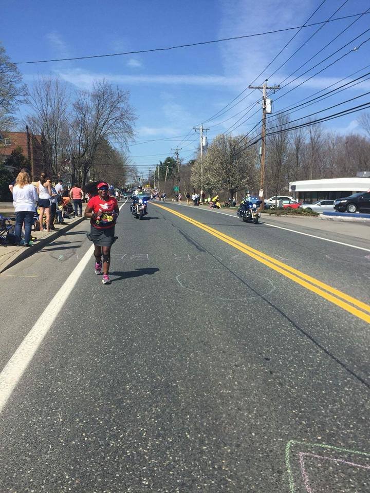 “Can I go home now? I just completed a half in Massachusetts, hell no I got 13.1 more to go”. I think back to the 15k mark where Pam from the Fifty States Half Marathon Club called out my name. I didn’t hear her, Jada screams out hey some lady knows you. I wave oh my I can’t cross the road to hug her. I had forgotten I was going to see her. Dang it, gotta keep running. I snap out of that thought cause my right foot throbs. I’m thinking I’m going to walk every hill til heartbreak. I can feel my toes swelling. I wait a little longer before applying my Real Time ointment, but it is almost time. I tell Jada to hell with what I said, you can stop looking at your watch I don’t need a PR I just want to finish. She nods her head, but I know she is going to try to push me. Ah Man! I hate her right now! I asked her for this, what am I going to do cause she is gonna deliver? I’m thinking I’m gonna do what a dog on a leash does when they don’t wanna move. Pull back and sit down. Even I had to chuckle at the thought. I kept pushing through other runners.