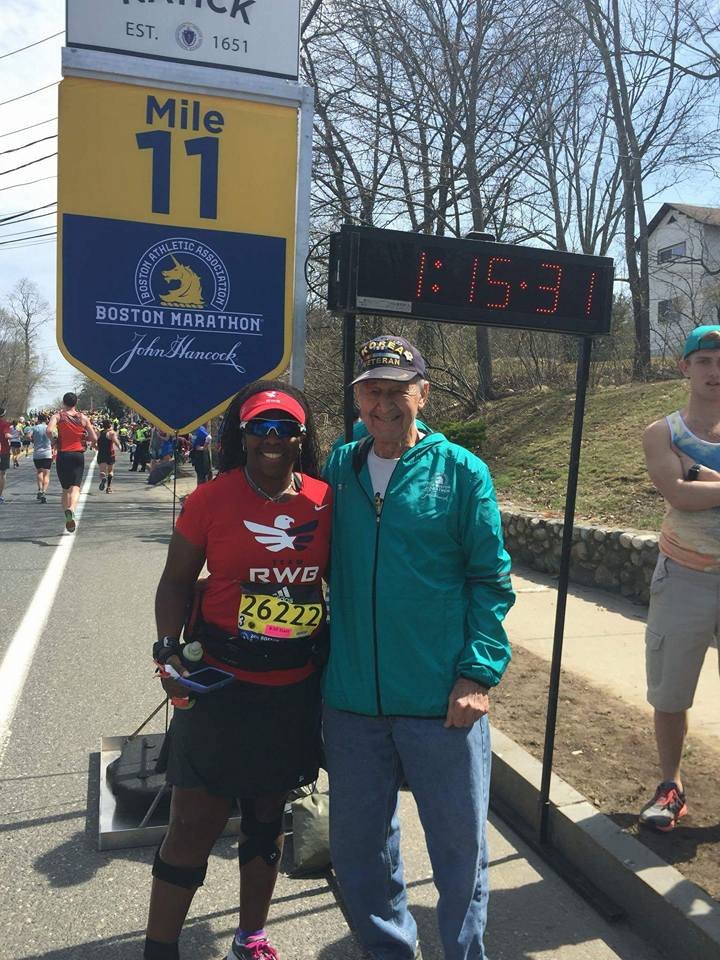 I love my service members! Mile 7. That was the best mile. Jada became famous. She ran with the elites to video record only to realize later she didn’t video. The coolest thing was she and I were both videoed by the news crew hilarious! We were had another famous moment.